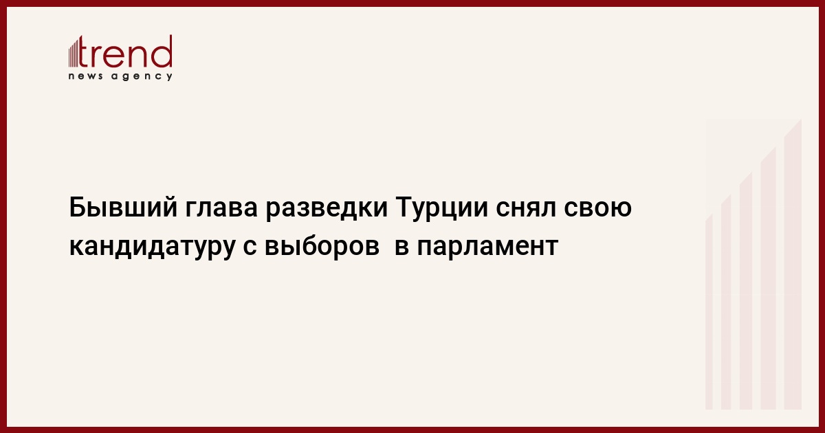 БАКУ /Trend/ - Бывший глава турецкой разведки Хакан Фидан объявил, что снимает свою кандидатуру от правящей партии в предстоящих парламентских выборах, сообщает агентство "Anadolu".