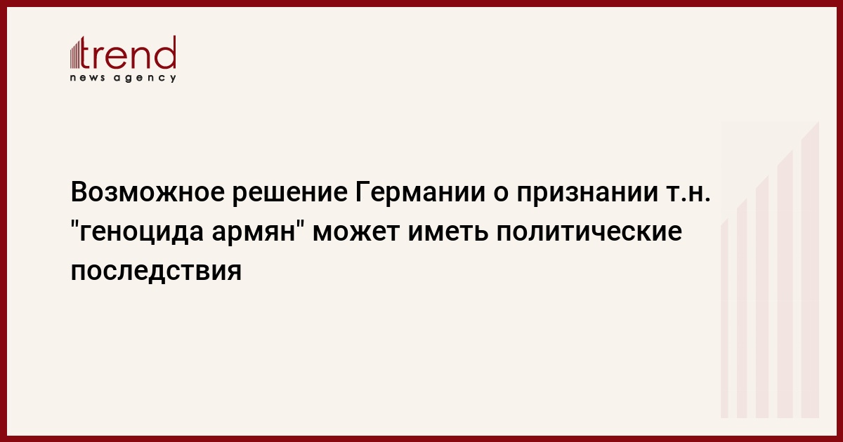 "Если Германия все-таки признает т.н. "геноцид армян", Турция не сможет повлиять на Германию экономически в плане снижения объемов торговли. Максимум, что может сделать Турция, - отозвать своего посла, однако это маловероятно", - сказал Юсуф Чинар.