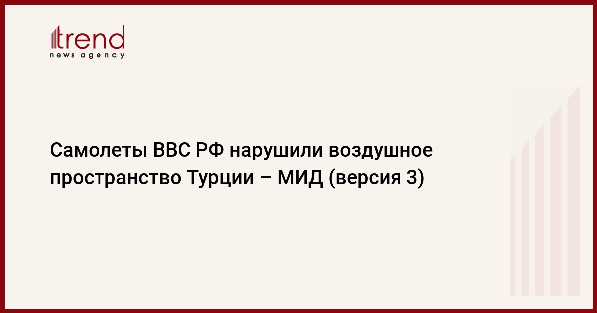 БАКУ /Trend/ - Самолеты ВВС России, которые принимают участие в военных операциях в Сирии, нарушили воздушное пространство Турции. Об этом говорится в сообщении МИД Турции, распространенном в понедельник.