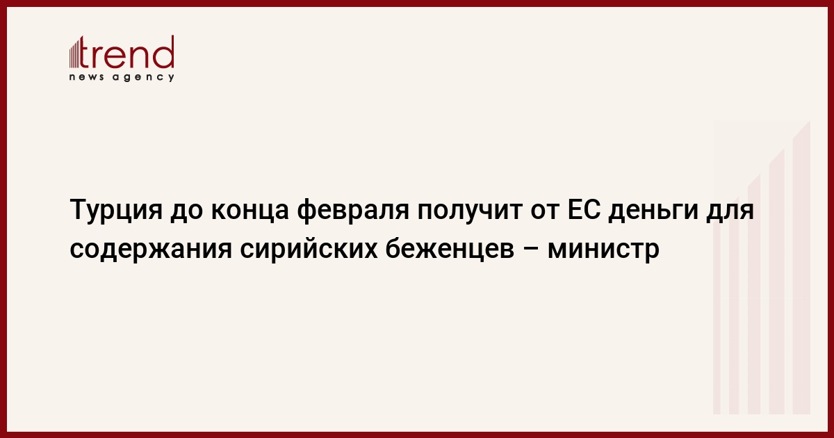 БАКУ /Trend/ - До конца февраля Турция получит три миллиарда евро, которые ЕС выделил для содержания сирийских беженцев в Турции, сказал министр по делам ЕС Волкан Бозкыр, сообщает в субботу агентство Anadolu.