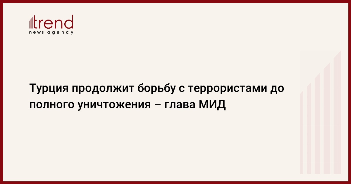 БАКУ /Trend/ - Турция продолжит борьбу с террористами до их полного уничтожения, написал глава МИД Турции Мевлют Чавушоглу в своем микроблоге в соцсети Twitter.