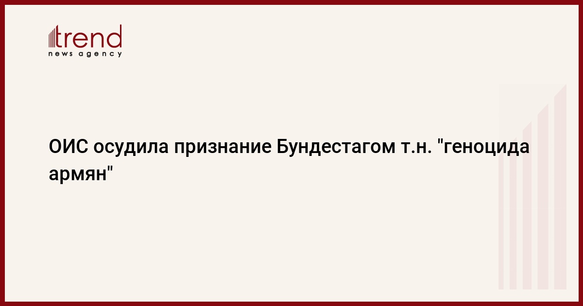 БАКУ /Trend/ - Организация исламского сотрудничества (ОИС) осудила принятие Бундестагом (парламент Германии) резолюции, признающей события 1915 года т.н. "геноцидом армян", передает агентство Anadolu.