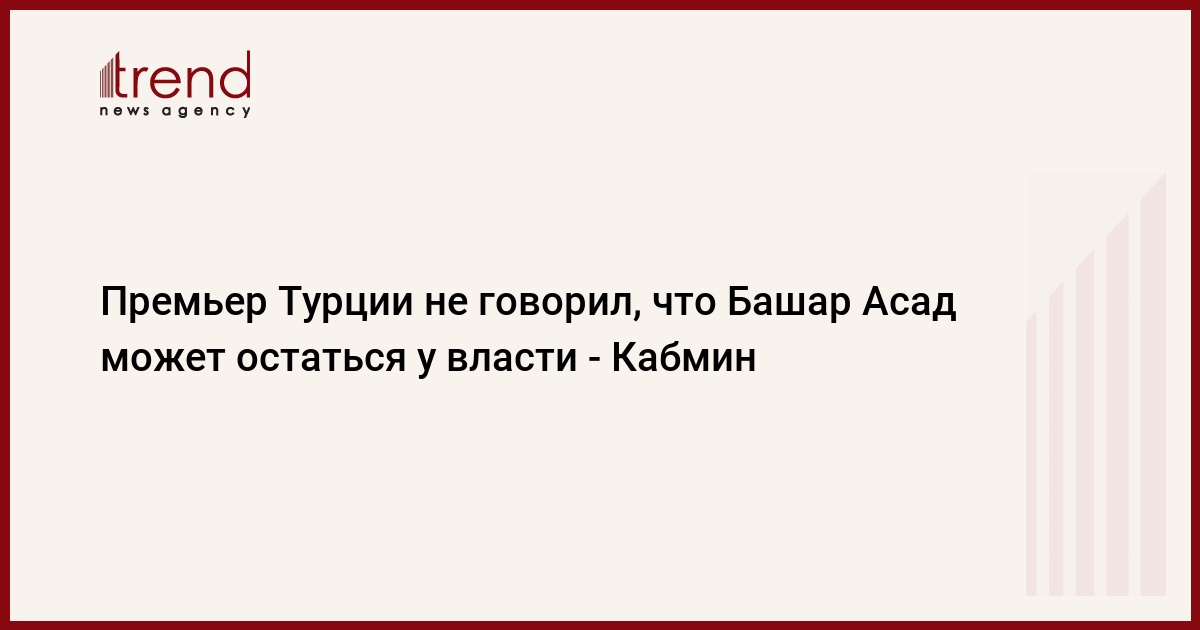 БАКУ /Trend/ - Премьер-министр Турции не говорил, что Башар Асад может остаться у власти в период переходного правительства, передает газета Haber 7 со ссылкой на сообщение Кабинета министров страны, распространенное в субботу.