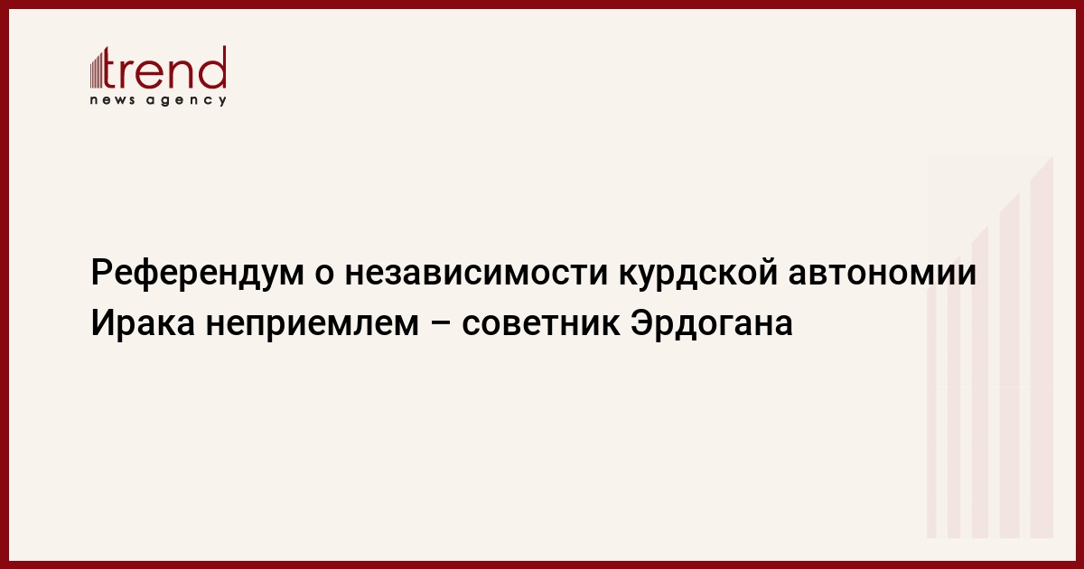 БАКУ /Trend/ - Референдум о независимости курдской автономии Ирака неприемлем для Турции, и Анкара не признает результаты этого референдума, сказал главный советник президента Турции Ялчын Топчу.