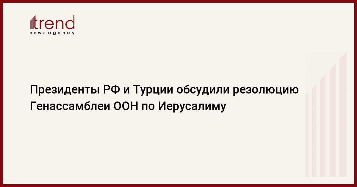 БАКУ /Trend/ - Президенты России и Турции Владимир Путин и Реджеп Тайип Эрдоган обсудили в ходе телефонной беседы резолюцию Генассамблеи ООН по Иерусалиму, пишут в пятницу турецкие СМИ.