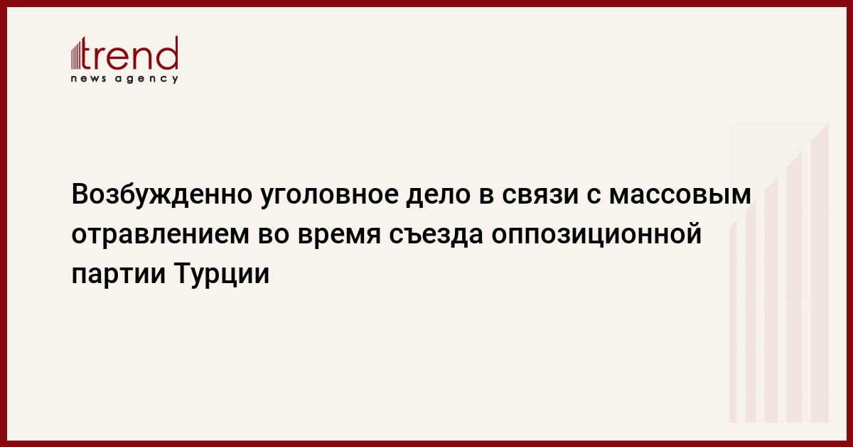 БАКУ /Trend/ - Возбужденно уголовное дело в связи с массовым отравлением во время съезда оппозиционной Народно республиканской партии (CHP) Турции, сообщают во вторник турецкие СМИ со ссылкой на слова, пресс-секретаря партии Бюлента Тезджана.