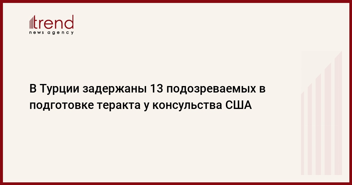 БАКУ /Trend/ - В турецкой провинции Адана на юге страны задержаны 13 человек, подозреваемых в подготовке теракта у консульства США в провинции, пишут в среду турецкие СМИ.