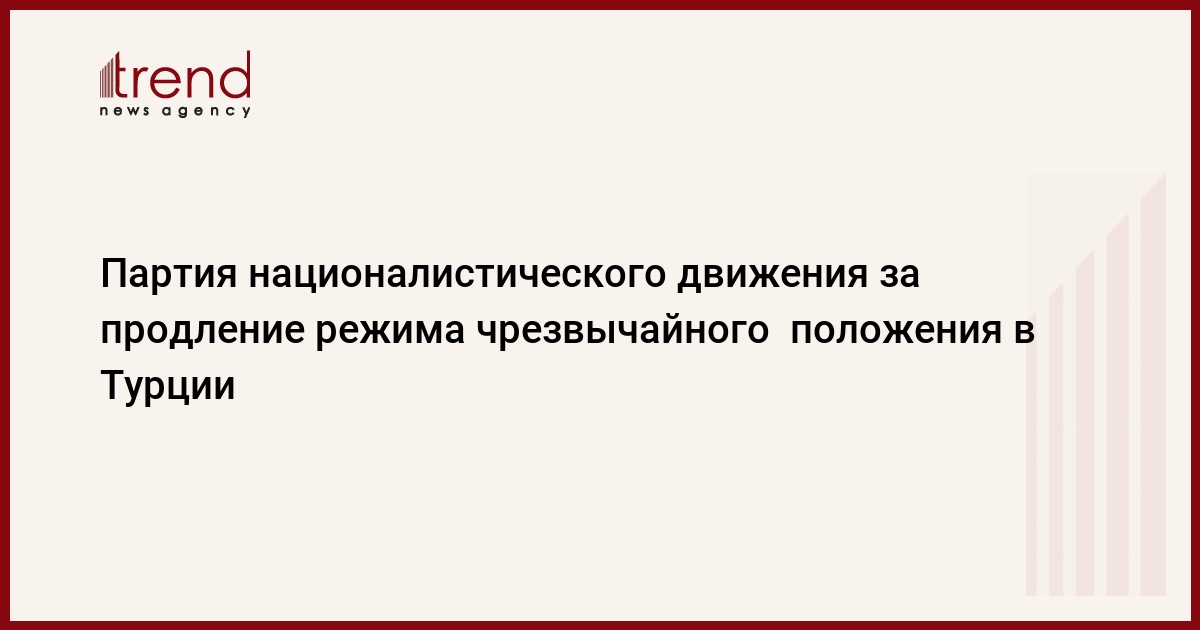 БАКУ /Trend/ - Партия националистического движения (MHP) выступает за продление режима чрезвычайного положения в Турции. Об этом заявил сам лидер MHP Девлет Бахчели, пишут во вторник турецкие СМИ.