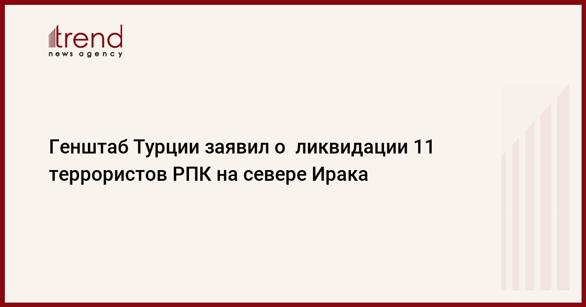 БАКУ /Trend/ - ВВС Турции уничтожили 11 террористов в рамках операции проводимой на севере Ирака против террористической организации РПК, говорится в сообщении Генштаба Турции, распространенном в среду.