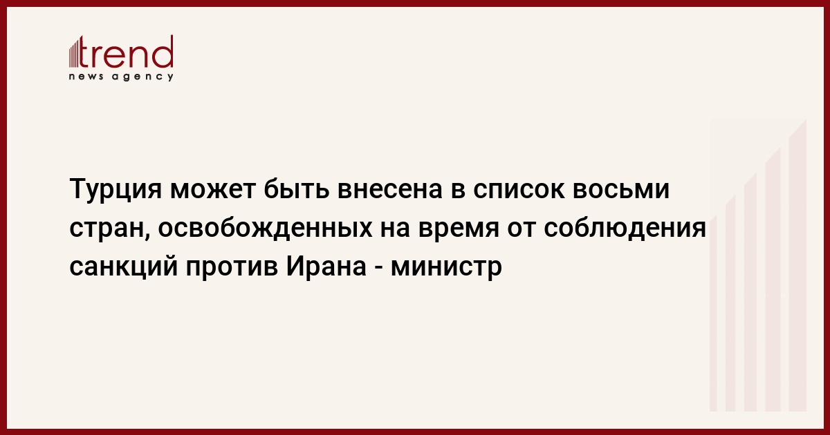 БАКУ /Trend/ - Турция может быть внесена в список восьми стран, освобожденных на время со стороны США от соблюдения нефтяных санкций против Ирана. Об этом, как передают Турецкие СМИ, сообщил журналистам министр энергетики и природных ресурсов Турции Фатих Донмез.