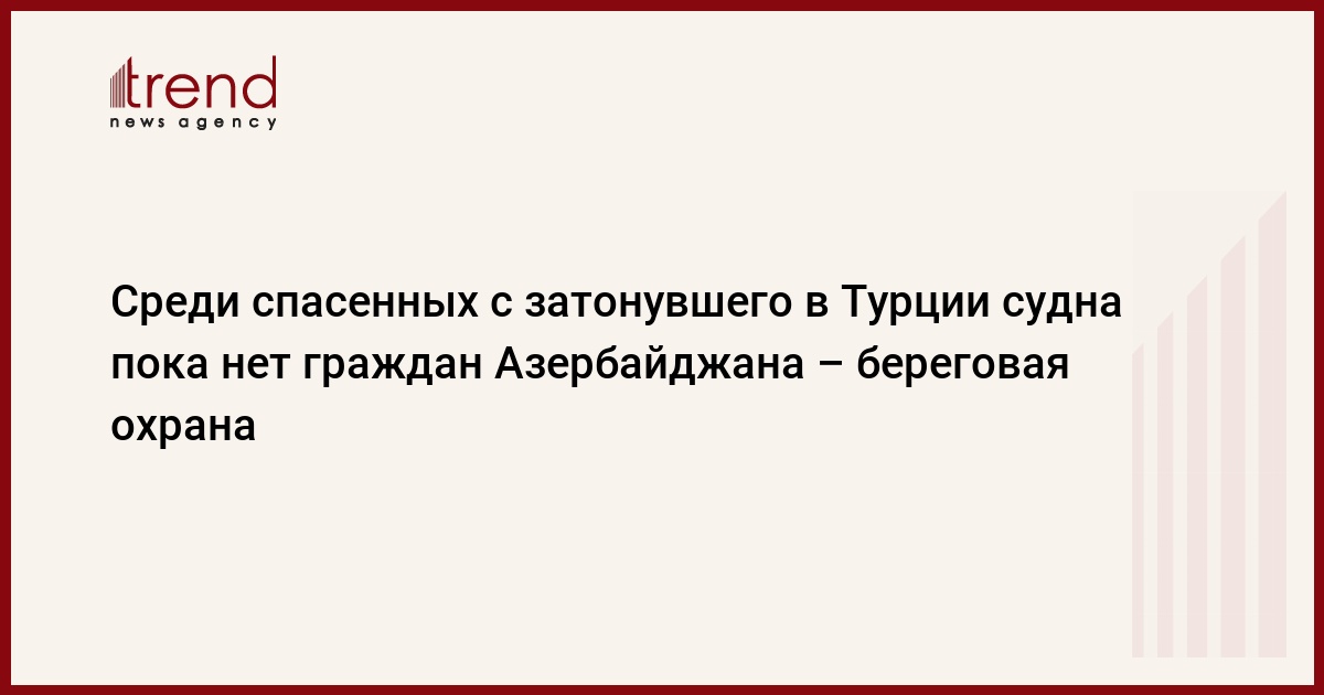 БАКУ /Trend/ - На настоящее время среди спасенных членов экипажа судна, затонувшего в Черном море у побережья турецкой провинции Самсун, граждан Азербайджана нет. Об этом сообщили Trend в понедельник в Самсунском отделении береговой охраны Турции.