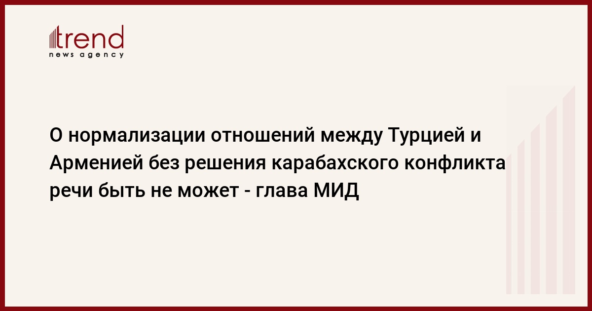 БАКУ /Trend/ - Без решения нагорно-карабахского конфликта и речи быть не может о нормализации отношений между Турцией и Арменией, сказал глава МИД Турции Мевлют Чавушоглу, пишет во вторник Trend со ссылкой на турецкие СМИ.