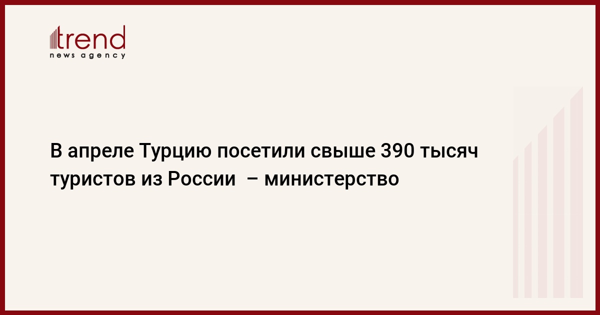 БАКУ /Trend/ - В апреле 2019 года Турцию посетили 391,5 тысячи туристов из России, что на 33,77 процента больше по сравнению с показателем аналогичного периода 2018 года, сообщили в пятницу Trend в министерстве культуры и туризма Турции.