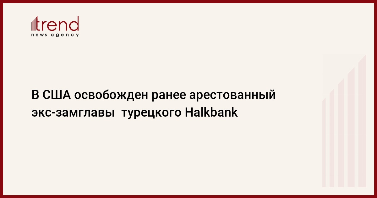 БАКУ /Trend/ - В США освобожден ранее арестованный экс-замглавы турецкого Halkbank Хакан Атилла, передает в пятницу Trend со ссылкой на турецкие СМИ.