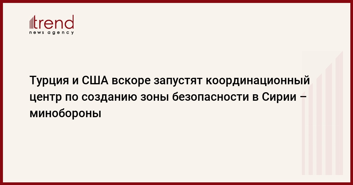 БАКУ /Trend/ – Турция и США очень скоро запустят координационный центр по созданию зоны безопасности в Сирии, сказал министр обороны Турции Хулуси Акар, сообщает в понедельник Trend со ссылкой на турецкие СМИ.