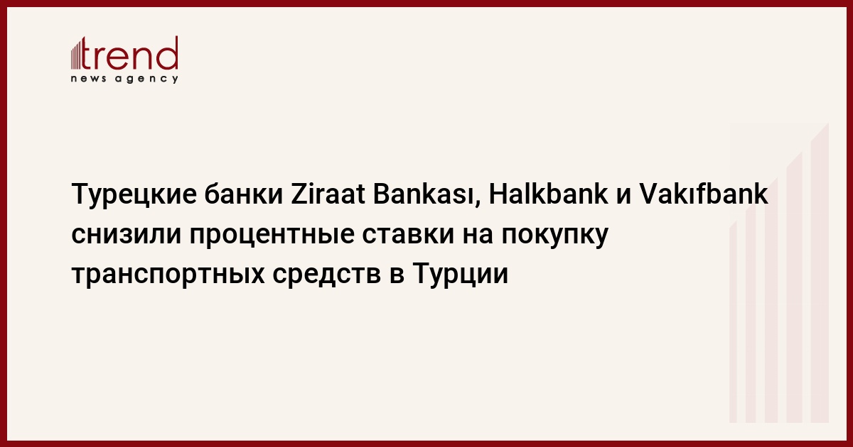 БАКУ /Trend/ - Турецкие банки Ziraat Bankası, Halkbank и Vakıfbank снизили ежемесячные процентные ставки на покупку транспортных средств в Турции, пишет в четверг Trend со ссылкой на турецкие СМИ.