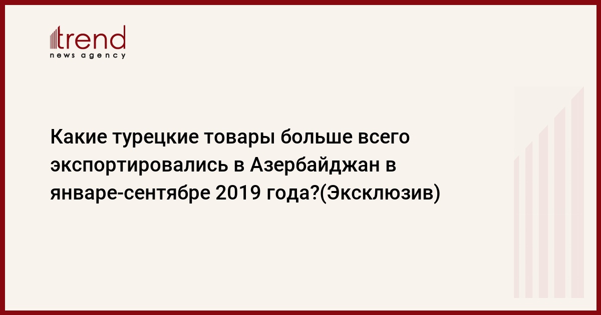 «Экспорт Турции в Азербайджан в сентябре 2019 года также вырос на 30,80 процента по сравнению с сентябрем 2018 года, составив 116,773 миллиона долларов»,- сказали в TİM.