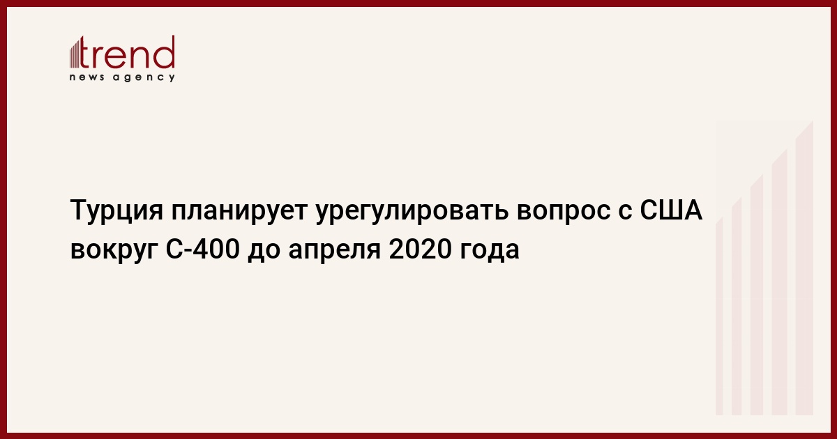 Турция намерена до апреля 2020 года урегулировать с США разногласия относительно покупки и эксплуатации Анкарой российских зенитных ракетных систем (ЗРС) С-400. Об этом президент Турции Тайип Эрдоган заявил во вторник журналистам, сопровождавшим его в поездке в Катар, передает Trend со ссылкой на ТАСС.