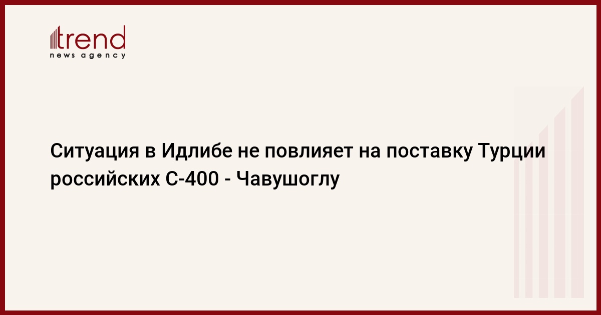 Разногласия России и Турции по Идлибу не повлияют на поставку ракетных комплексов С-400 и отношения Москвы и Анкары в целом. Об этом заявил в субботу министр иностранных дел Турции Мевлют Чавушоглу по итогам встречи с министром иностранных дел Сергеем Лавровым в Мюнхене, передает Trend со ссылкой на ТАСС.