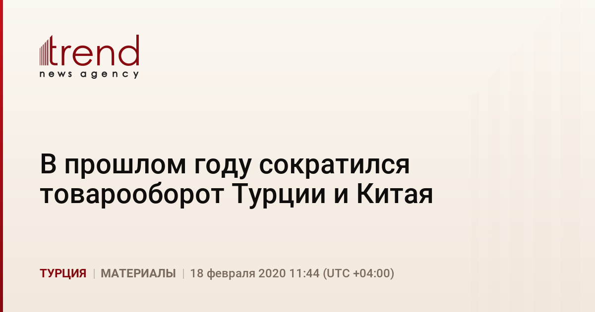 БАКУ/Trend/ - Товарооборот между Турцией и Китаем в январе-декабре 2019 года сократился на 2,543 миллиарда долларов по сравнению с аналогичным периодом 2018 года, составив 21,089 миллиарда долларов.