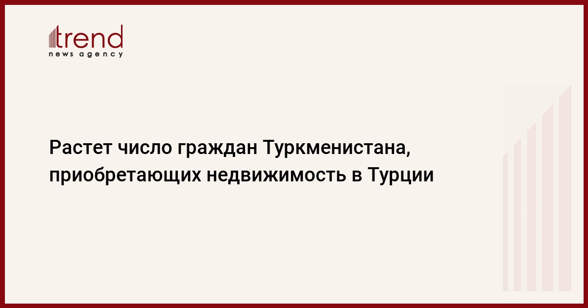 Согласно информации, в августе 2020 года граждане Туркменистана приобрели в Турции 56 объектов недвижимости, что на 31 объект больше по сравнению с августом 2019 года.