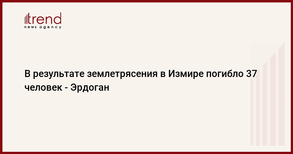 БАКУ /Trend/ - В результате землетрясения в Измире на сегодняшний день погибло 37 человек.