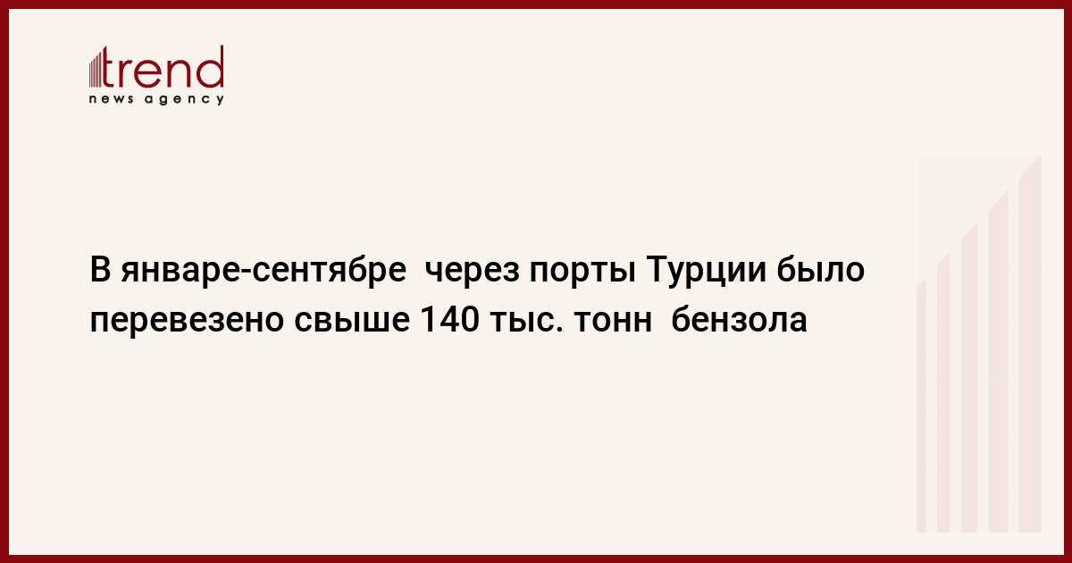 В январе-сентябре этого года через порты Турции транзитные перевозки бензола не осуществлялись.
