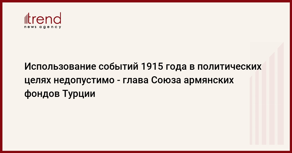 По его словам, армянская община Турции не одобряет "использование политическими властями некоторых вызывающих боль и сожаление инцидентов между двумя народами, имевших место более 100 лет назад”.