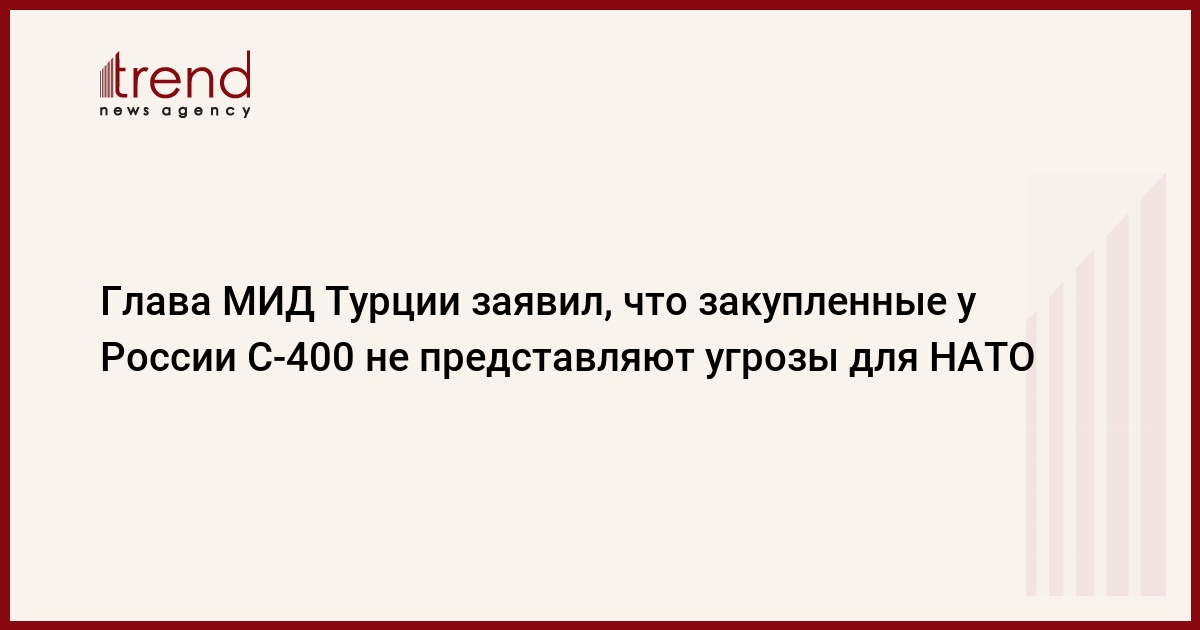 Турецкие власти не считают закупленные у России зенитные ракетные системы (ЗРС) С-400 угрозой для НАТО и планируют подходить к этой теме с реалистических позиций. Об этом заявил министр иностранных дел республики Мевлют Чавушоглу в колонке для французской газеты L'Opinion, опубликованной в воскресенье, передает Trend со ссылкой на ТАСС.
