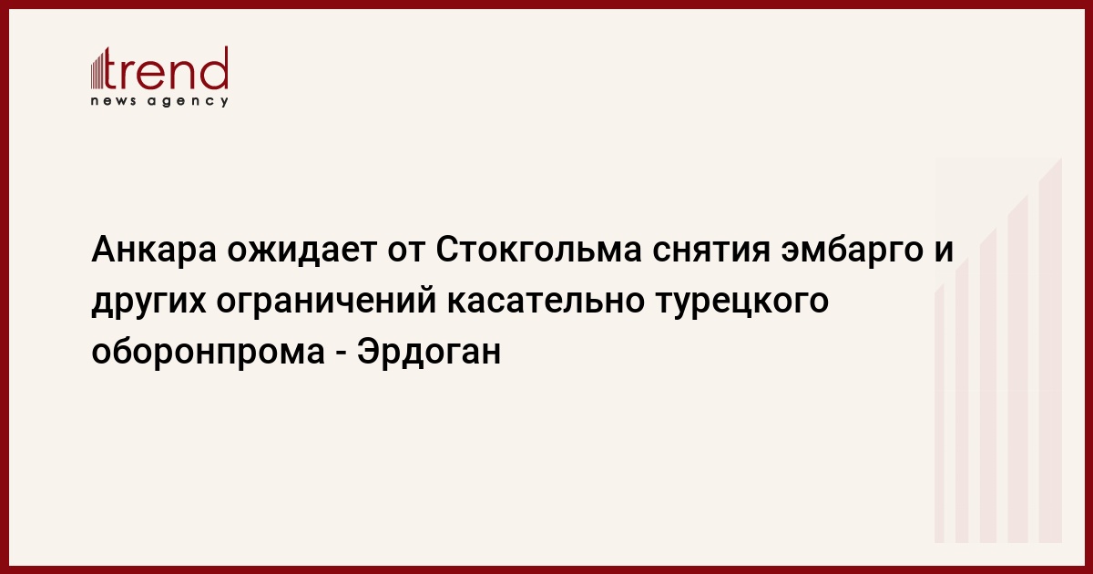 Эрдоган заявил, что Анкара ожидает снятия эмбарго и других ограничений, касающиеся экспорта продукции оборонпрома Турции.