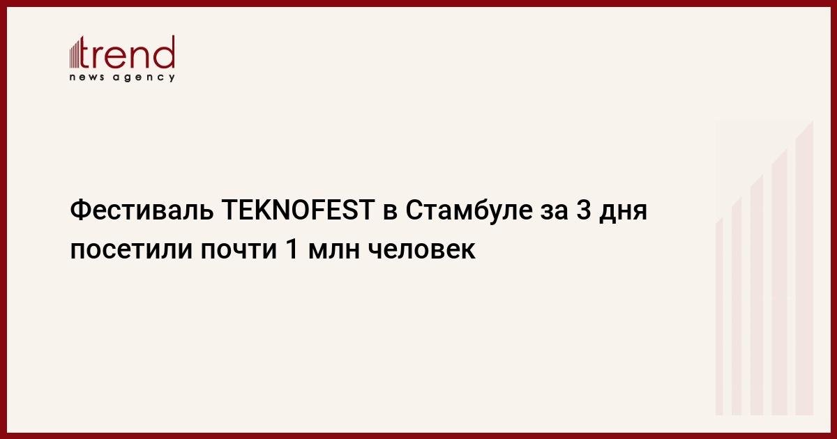 Крупнейший в мире фестиваль авиации, космонавтики и технологий TEKNOFEST - 2023 в Стамбуле за три дня посетили почти 1 млн человек, передает Trend со ссылкой на "Анадолу".