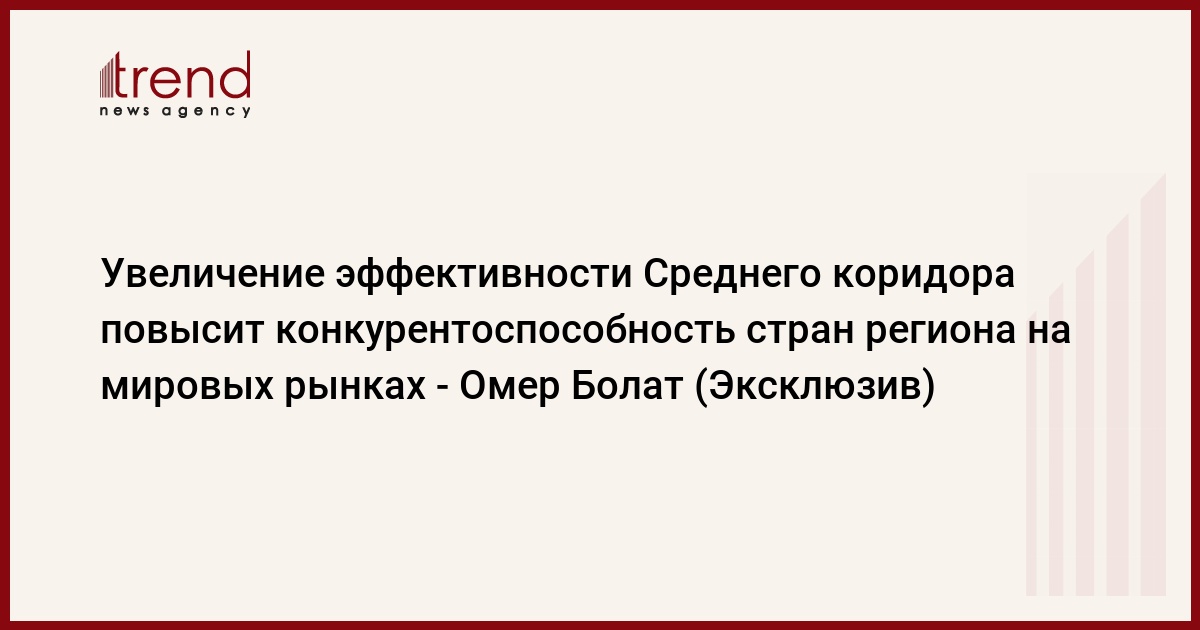 "Как известно, Транскаспийский маршрут является важной альтернативой для нашей страны во внешнеторговых перевозках. С вводом в эксплуатацию железной дороги Баку-Тбилиси-Карс (БТК) в 2017 году была открыта значительная часть Среднего коридора. Инициативы по развитию Среднего коридора, соединяющего Азию и Европу через Каспийское море, Кавказ и Турцию, в последнее время набирают обороты", - сказал Омер Болат.