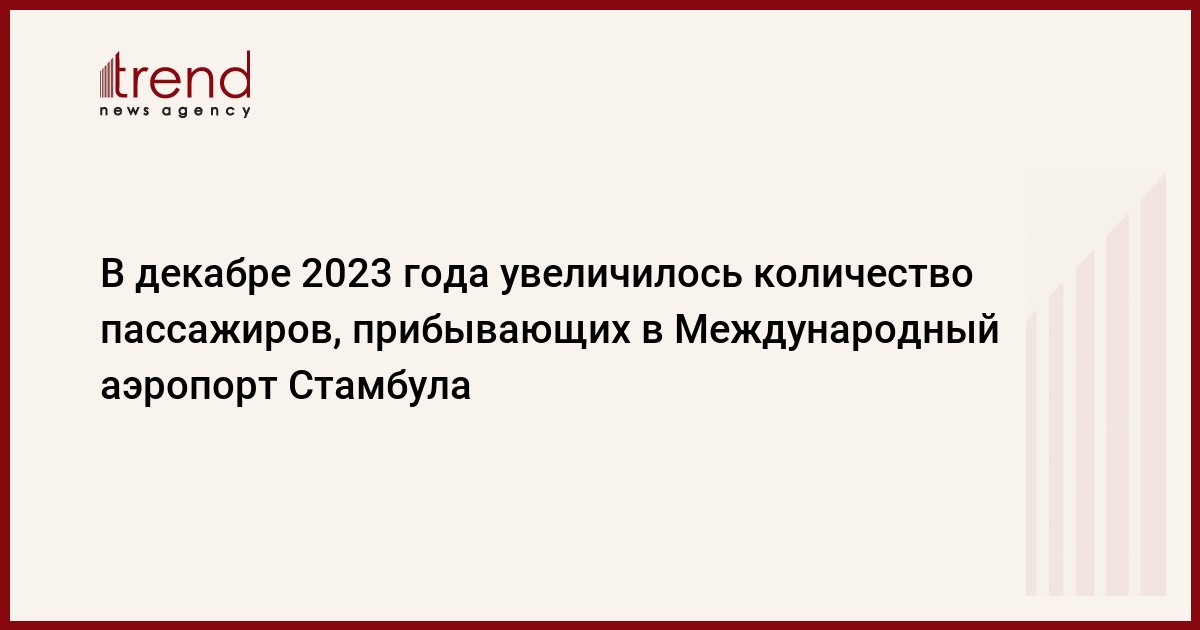 БАКУ /Trend/ - В декабре 2023 года количество пассажиров, прибывающих в Международный аэропорт Стамбула, увеличилось на 18 процентов и составило 76 миллионов 236 тысяч 980 человек.