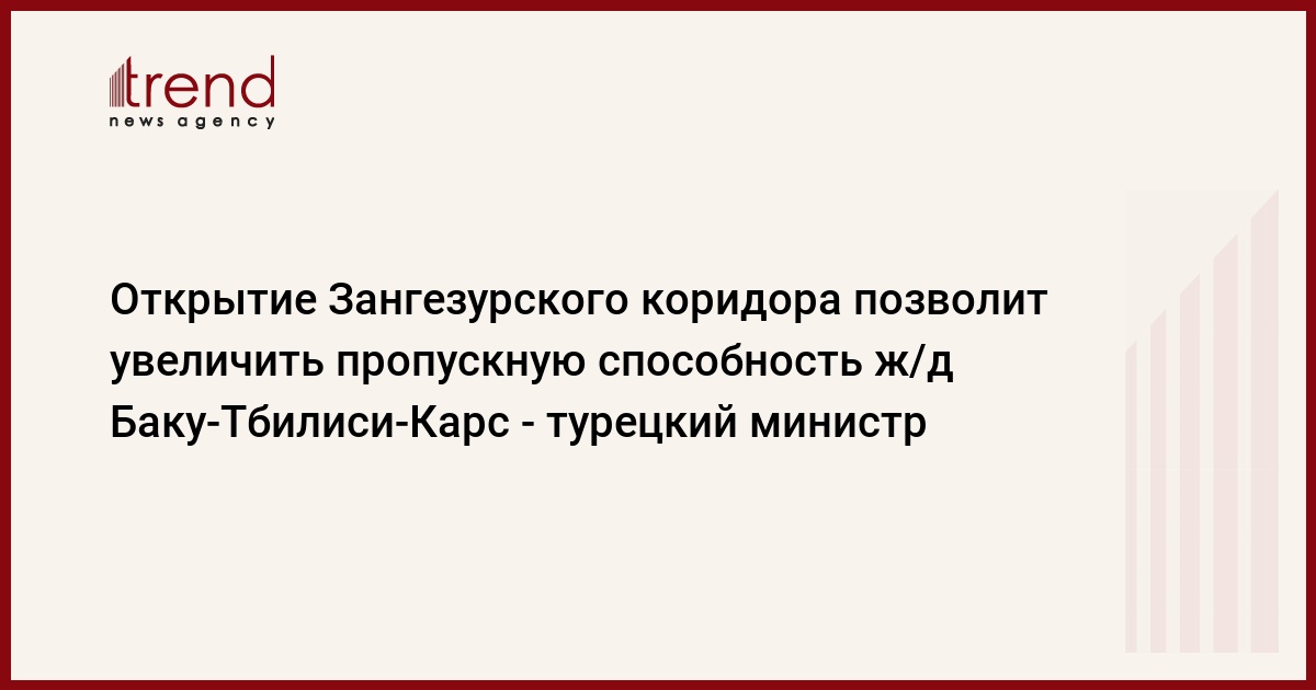 БАКУ /Trend/ - Открытие Зангезурского коридора позволит увеличить пропускную способность железнодорожной линии Баку-Тбилиси-Карс.