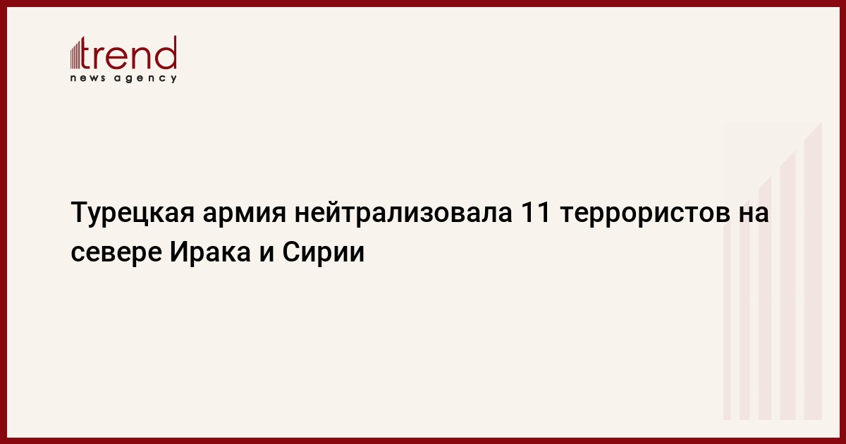 БАКУ /Trend/ - ВС Турции нейтрализовали 11 членов террористической организации РПК/YPG на севере Ирака и Сирии, говорится в сообщении министерства национальной обороны Турции, передает Trend.