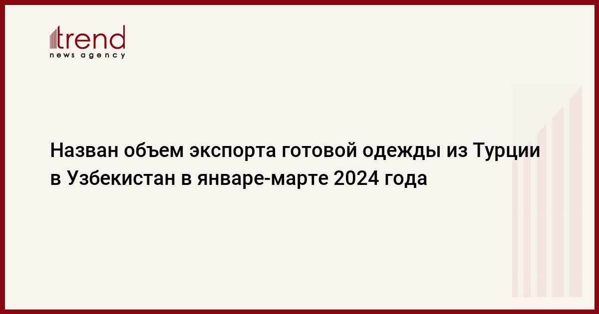 БАКУ /Trend/ - В январе-марте 2024 года турецкий экспорт готовой одежды в Узбекистан увеличился в 1,2 раза по сравнению с аналогичным периодом прошлого года и составил 24,7 миллиона долларов США.