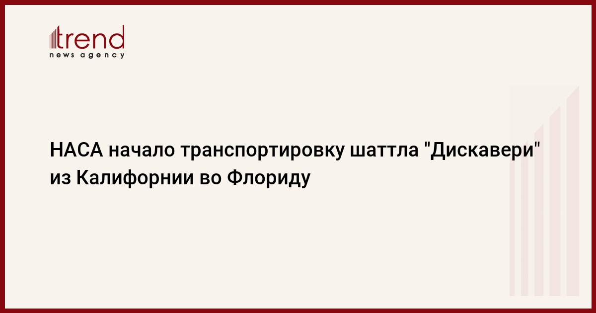НАСА (Национальное управление по аэронавтике и исследованию космического пространства) начало транспортировку шаттла "Дискавери", приземлившегося с астронавтами 128-й миссии в Калифорнии 12 сентября, к месту постоянного базирования во Флориду, передает РИА новости.