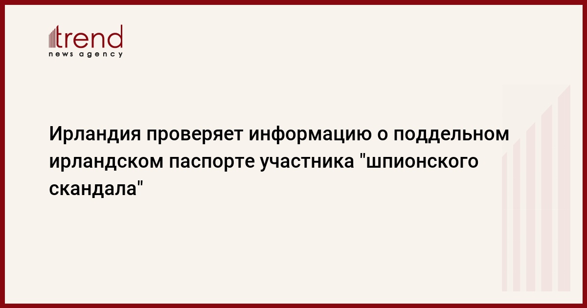 Министерство иностранных дел Ирландии проверяет информацию о том, что у одного из участников разгоревшегося в США "шпионского скандала" был поддельный ирландский паспорт, передает во вторник агентство Рейтер со ссылкой на представителя ведомства.