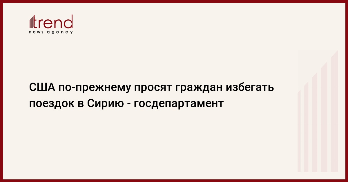 США по-прежнему не рекомендует гражданам посещать Сирию, американское посольство в Дамаске остается закрытым, говорится в сообщении госдепартамента.