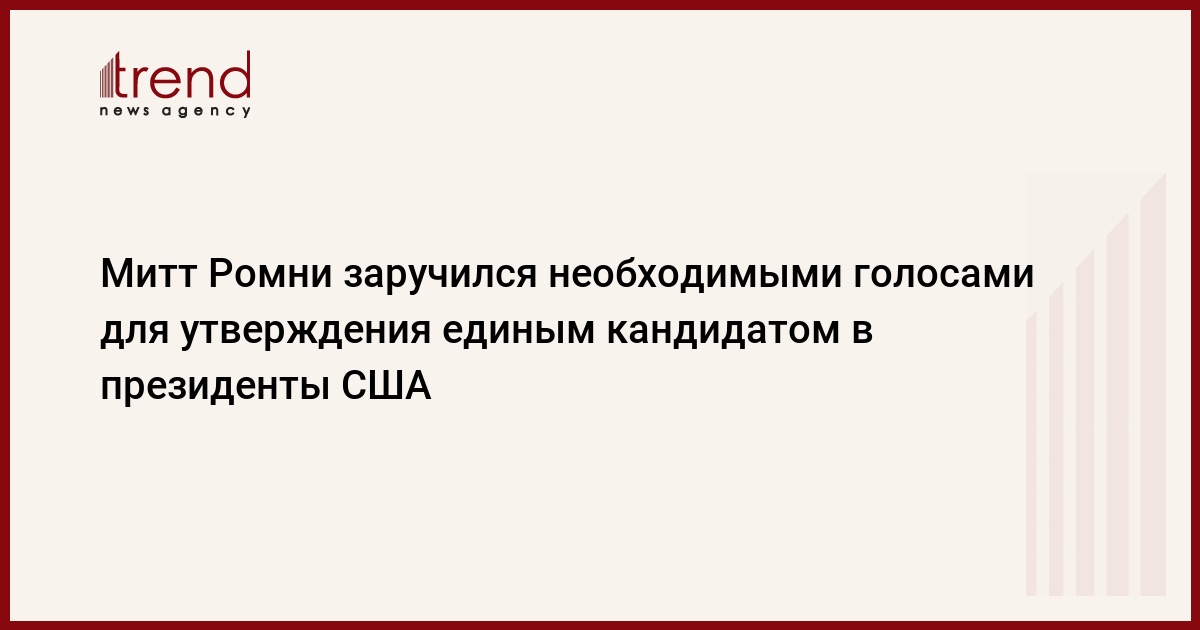 Экс-губернатор Массачусетса Митт Ромни победой на праймериз Республиканской партии в Техасе во вторник обеспечил себе необходимое количество голосов делегатов для того, чтобы быть выдвинутым единым кандидатом от республиканцев на предстоящих 6 ноября в США президентских выборах, сообщает РИА "Новости".