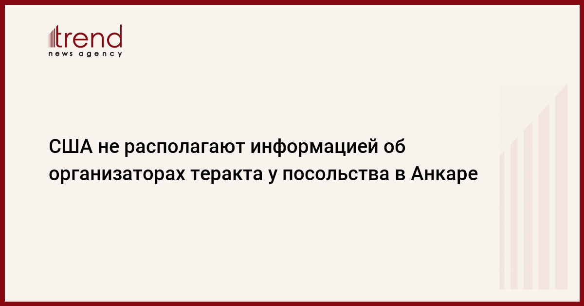 В США не располагают информацией о том, кто может стоять за организацией теракта у посольства в Анкаре. Об этом в ходе пресс-конференции сообщил журналистам официальный представитель Белого дома Джей Карни. "В настоящий момент ясно одно - это не что иное, как акт терроризма", - цитирует Карни агентство Reuters.