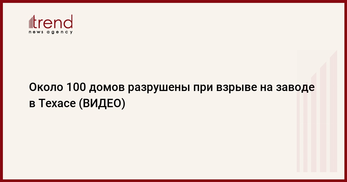 От 70 до 100 домов разрушены при взрыве на заводе удобрений в городе Вест (Техас), сообщает РИА Новости со ссылкой на телеканал NBC.