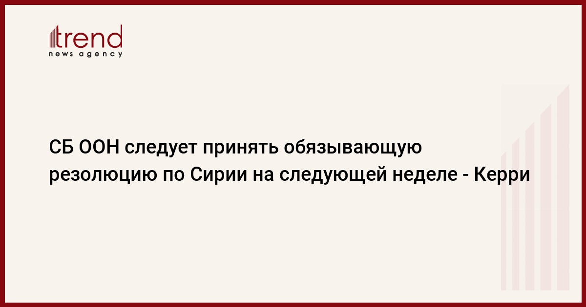 Совбезу ООН следует принять обязывающую резолюцию по Сирии на следующей неделе, заявил в четверг госсекретарь США Джон Керри, передает РИА Новости.