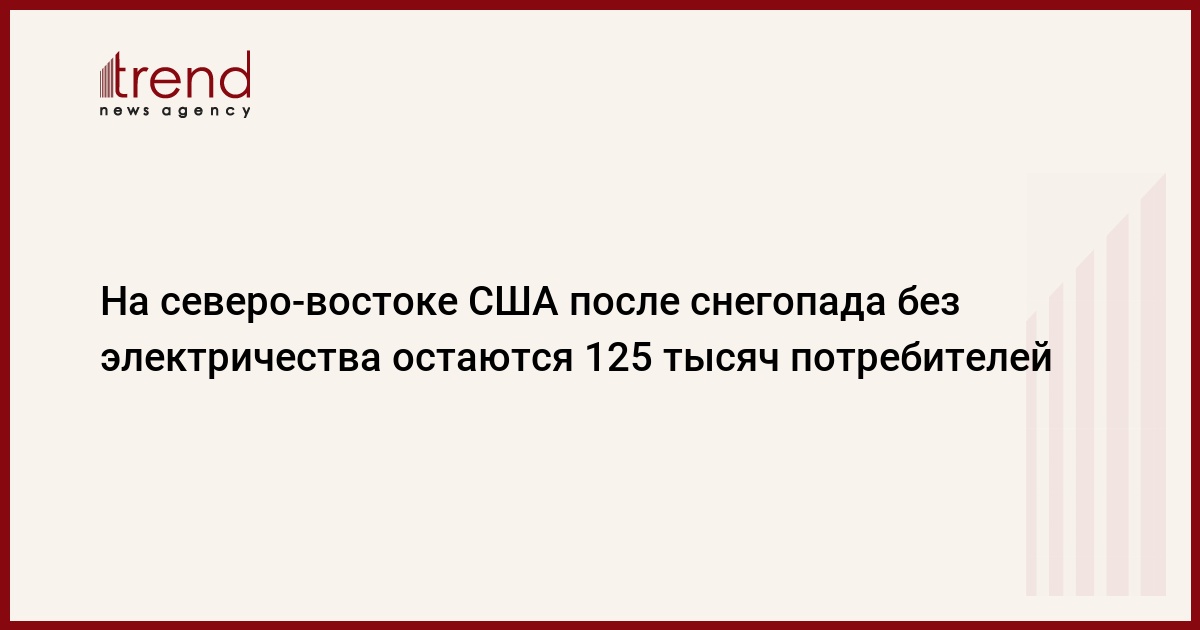 Около 125 тыс. потребителей остаются в настоящее время без электроэнергии в северо-восточных штатах США, на которые несколько дней назад обрушились сильные снегопады. Больше всего домовладений обесточено в районе Филадельфии (штат Пенсильвания), без электричества по-прежнему остаются и многие жители штата Мэриленд, пишет ИТАР-ТАСС.