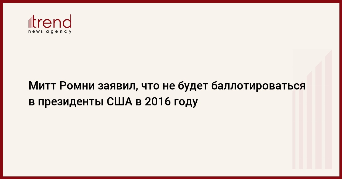 Республиканец Митт Ромни, бывший соперником Барака Обамы во время президентской гонки 2012 года, объявил, что не будет участвовать в следующих выборах, которые пройдут в ноябре 2016 года. Об этом говорится в распространенном заявлении политика, передает ТАСС.