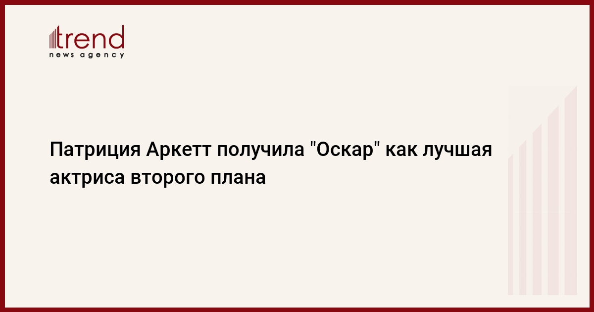 Патриция Аркетт получила премию киноакадемии США "Оскар" в номинации "лучшая актриса второго плана", пишет РИА Новости.