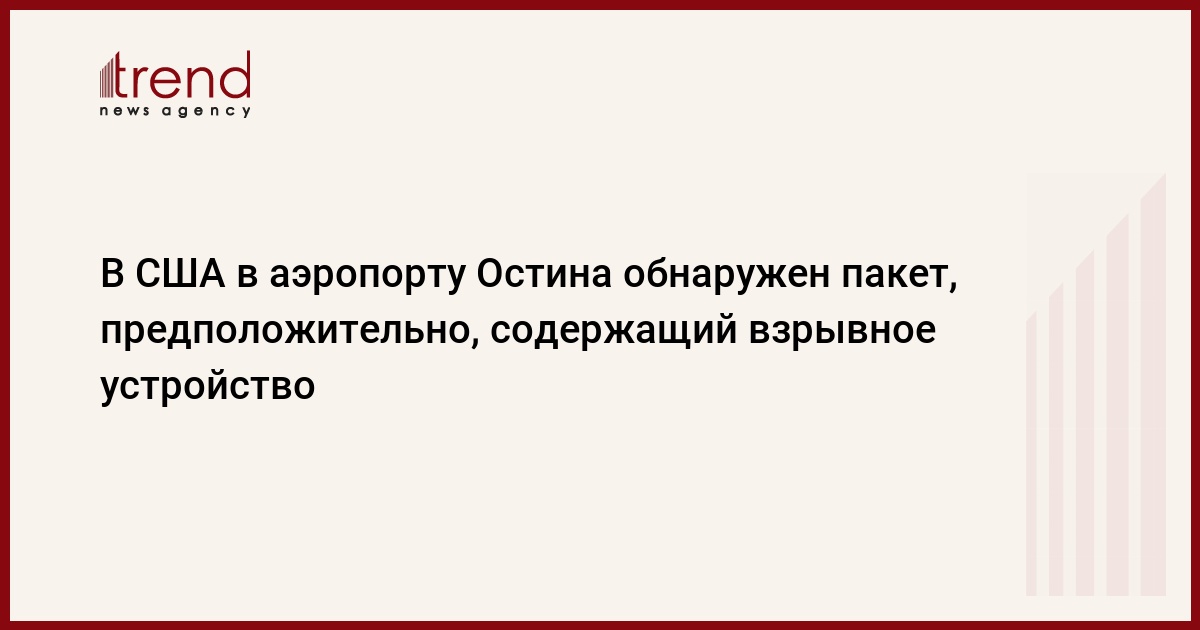 В США в международном аэропорту города Остина (административный центр штата Техас) обнаружен пакет, предположительно, содержащий взрывное устройство. Об этом сообщили во вторник вечером в полицейском управлении города, передает ТАСС.