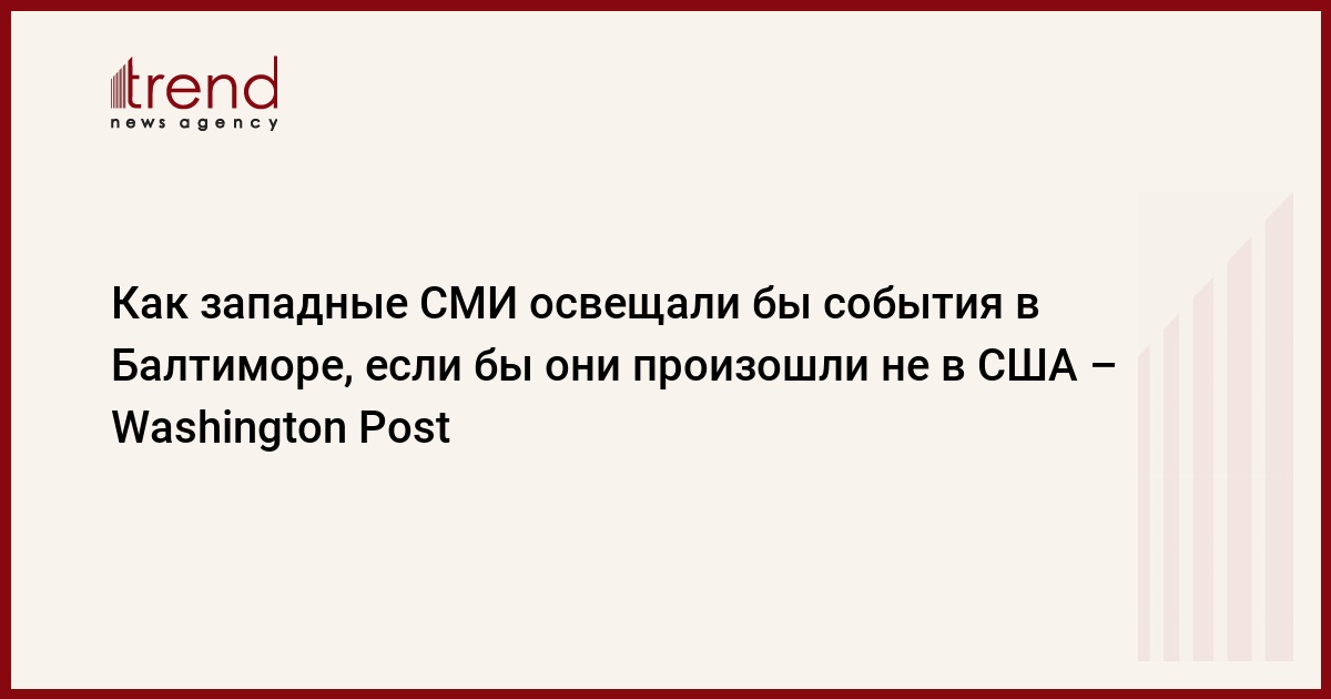 БАКУ /Trend/ - Один из редакторов авторитетного американского издания "Washington Post" Карен Аттиах написала статью о том, как западные СМИ освещали бы события в Балтиморе, если бы они произошли не в самих США.