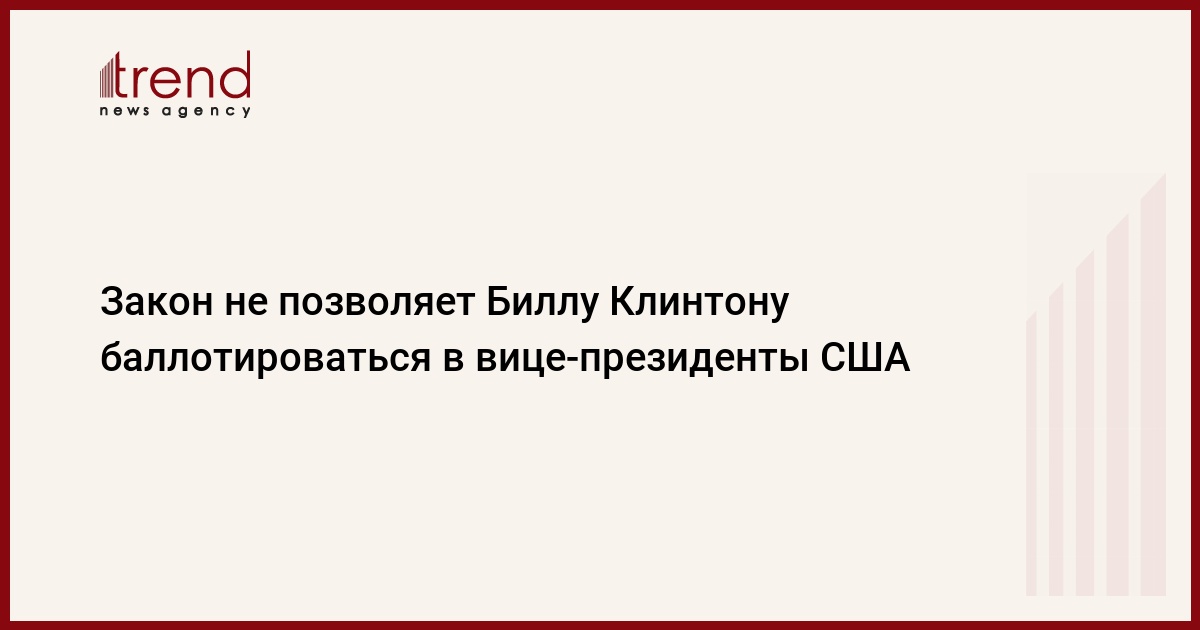 "Он был бы хорош, но он не вправе баллотироваться, - сказала Клинтон о муже. - По нашей конституции он уже отработал два (президентских) срока, так что, наверное, можно было бы утверждать, что в качестве вице-президента он не мог бы снова "унаследовать" данный (президентский) пост. Во всяком случае, мне так объяснили".