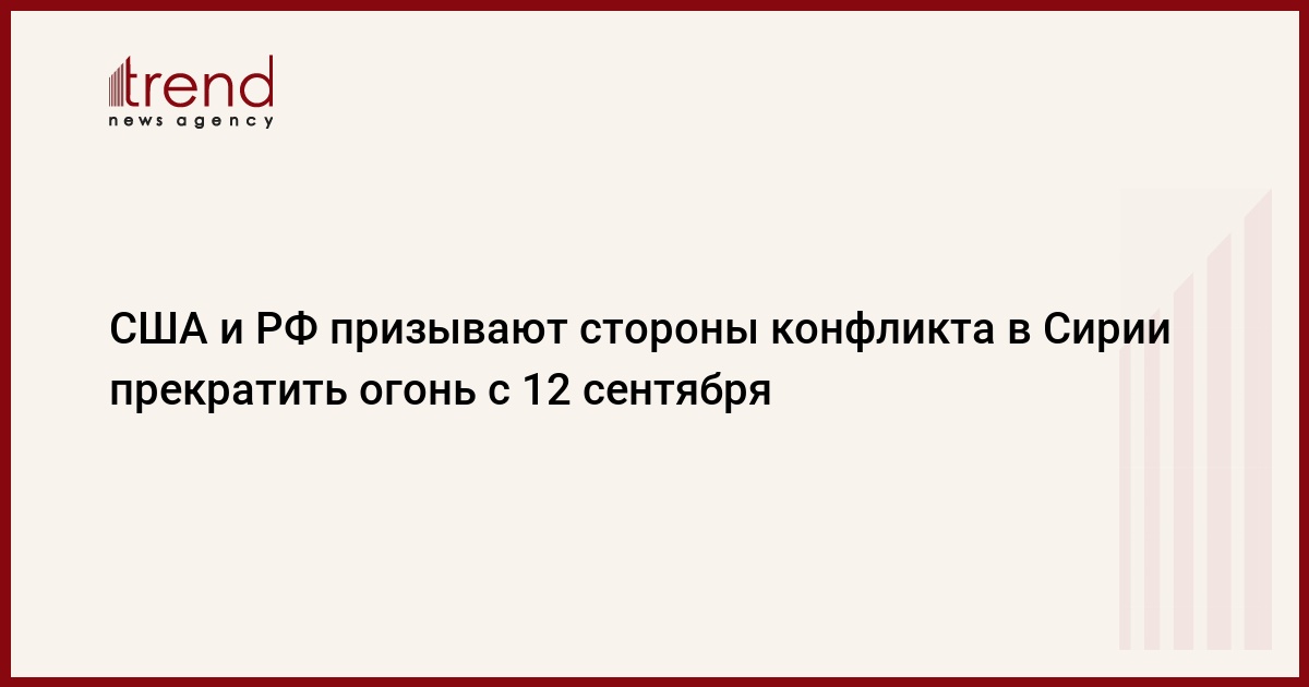 "РФ и США сегодня, вместе призывают все стороны конфликта придерживаться режима прекращения огня и уважать его прежние обязательства, оно начинает работать с 12 сентября", — сказал Керри по итогам переговоров с главой МИД РФ Сергеем Лавровым.